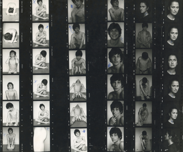 Known to a wider audience as the author and illustrator of The Rock Diaries (Odisseas, 1984), a landmark publication documenting Greece’s underground music scene of the 1970s and 1980s, George Tourkovasilis (1944–2021) was also the personal photographer and longtime assistant of Yannis Tsarouchis. Tsarouchis hired him in 1969 in Paris to photograph models and scenes used for his paintings. A graduate of the Law School of Athens with an unfulfilled ambition to become a film director, Tourkovasilis left his postgraduate studies in 1968 and moved to Paris, where he settled for the next decade. Alongside his collaboration with Tsarouchis, he worked professionally as a portrait photographer, capturing Tsarouchis’s models outside of studio sessions as well as Greek artists at the Cité Universitaire, including Silia Daskopoulou and Periklis Korovesis. Tourkovasilis returned to Greece in August 1976. In spring 1980, the Photographic Center of Athens presented his first solo exhibition, Faces and Spaces, which initiated a long collaboration with Giorgos Chronas and Odos Panos Publications, for whom he often wrote and contributed photographs. His partnership with Chronas on the book Motorcycle Rites (Odisseas, 1981) marked a pivotal moment in his career, culminating in a photographic portrait of motorcycle races among young riders in Keratsini.